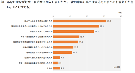 最後に、町会・自治会等に参加しない理由と、加入率を増やすための意見を続けてアップします。