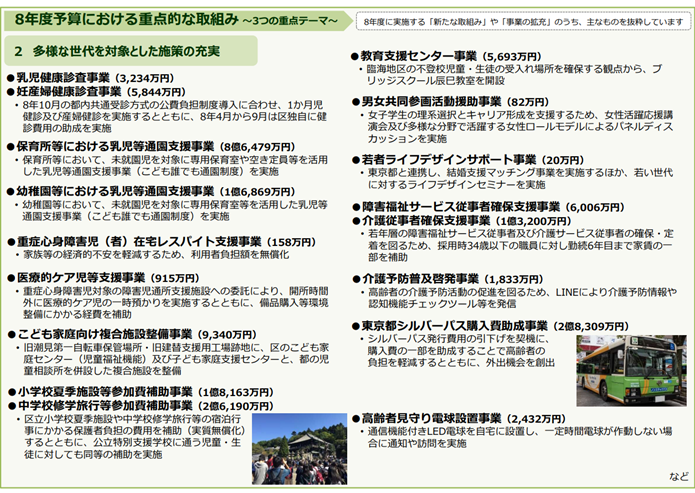 私がおもしろいなと思うのは、今年度の予算は区民の皆さまが実感しやすい事業が多いということです。